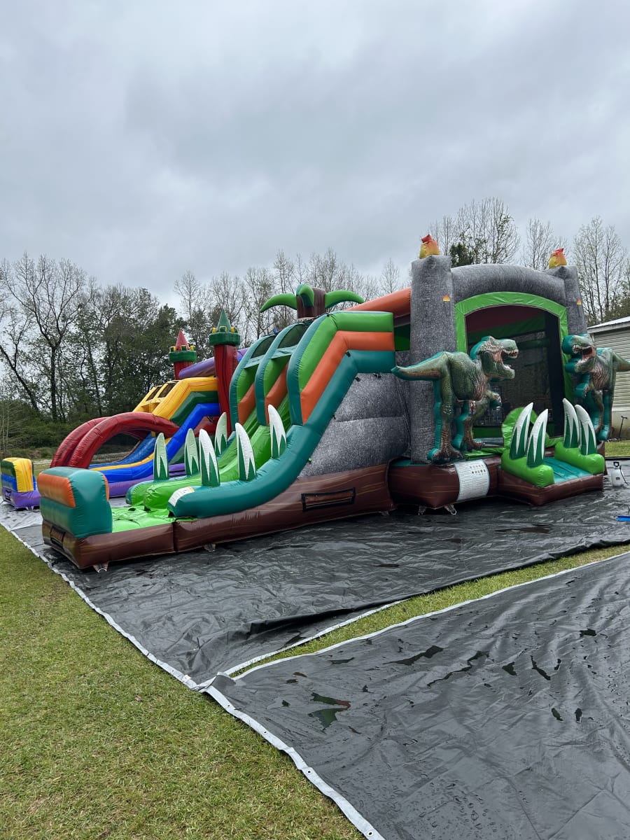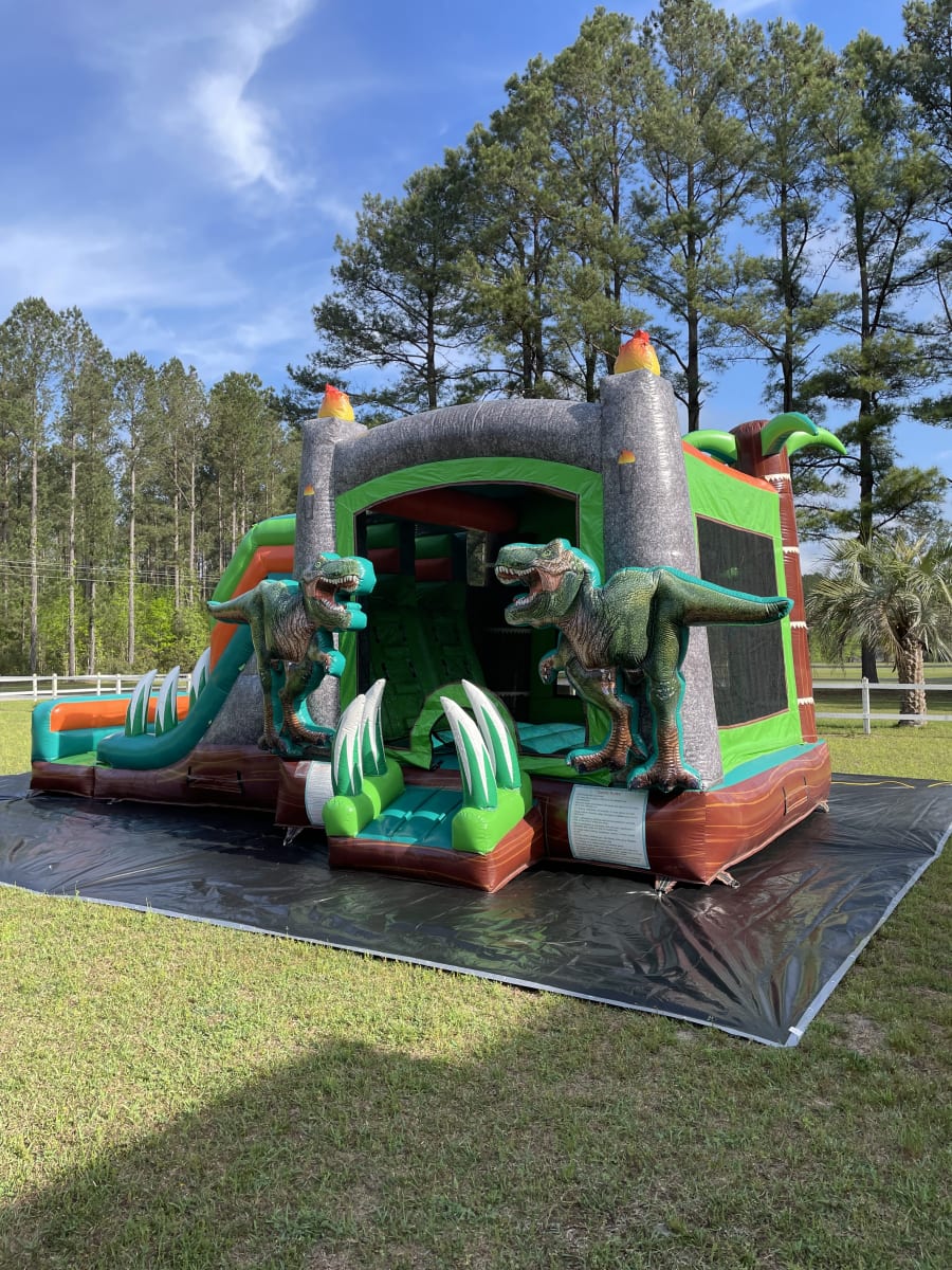 Dare to pass through the dinosaur claws at the entryway of the bounce house! Jump, play & shoot hoops before climbing to the slide where you glide down between even more claws! The detailed design will have your kids RAWRING for more!