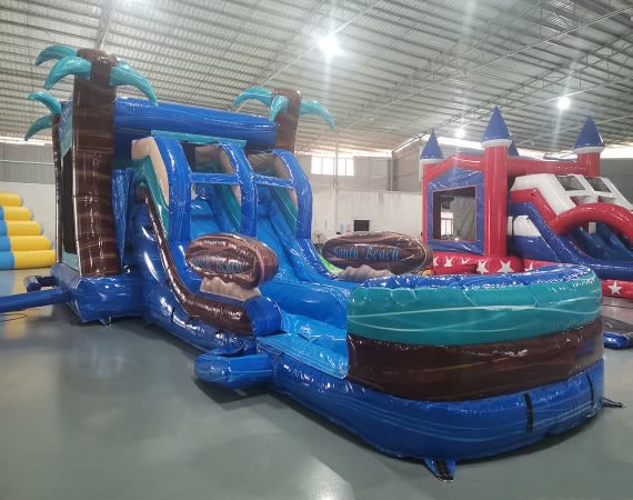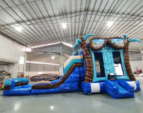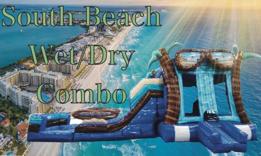 The South Beach bounce house combo has double lane slides and a bounce house all in one.This rental comes with an deep pool at the base of the bounce area, which provides maximum fun for kids to splash around on a hot summer day. The South Beach combo provides an inflated bumper for the cold months when you prefer to rent dry.