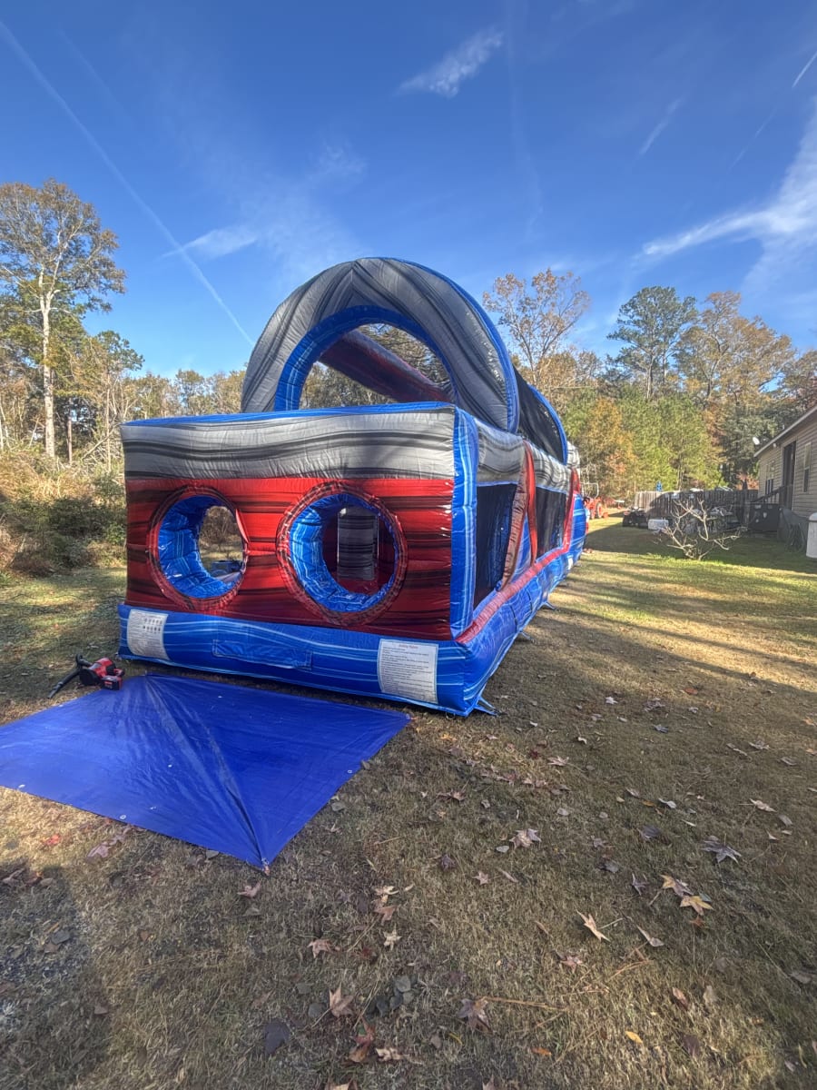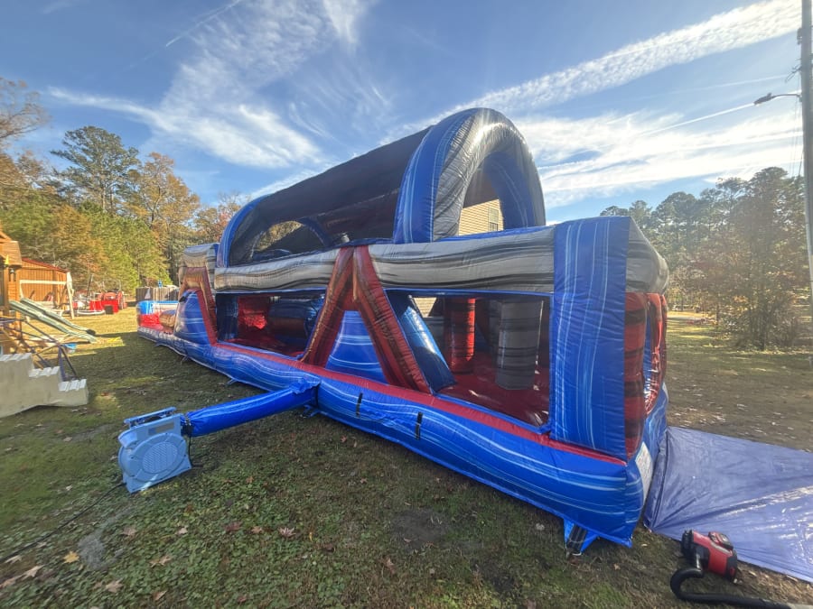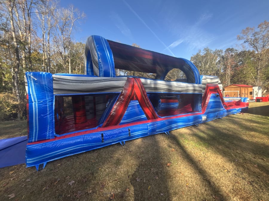 Looking for a unique way to add excitement to your next event? Rent our 46’ the captains obstacle course! This inflatable masterpiece is jam-packed with challenging obstacles and thrilling slides, perfect for all ages. Participants will have a blast navigating their way through the maze of pop-ups, tunnels, and more. This rental is sure to be a hit at any party or special occasion.