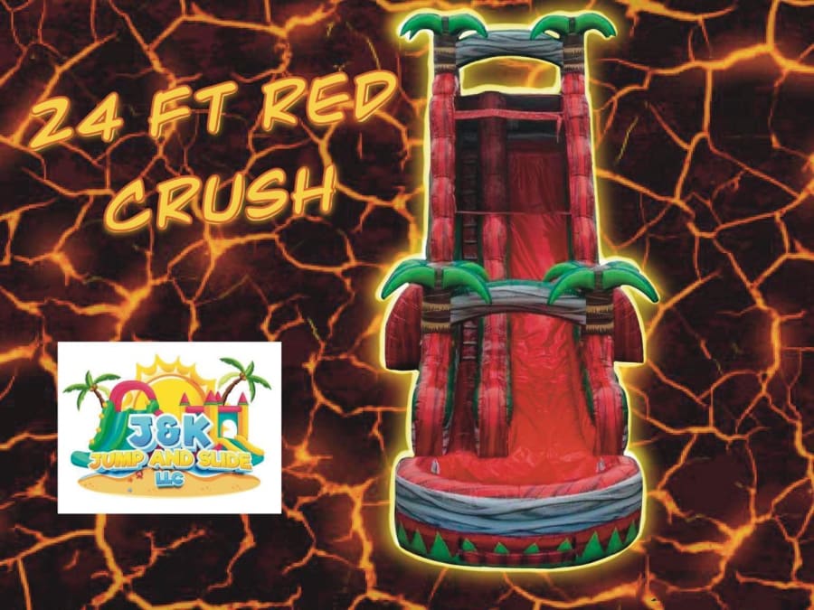 The 24ft Red Crush Water Slide is the perfect way to make a splash at your next party. This 24 foot tall slide features an amazing straight drop with no twists or turns – just pure adrenaline and fun! At the end of the slide, there’s a deep pool that provides plenty of entertainment for everyone. The Red Crush Water Slide comes with a bright red color, making it the perfect way to make a statement at your next party. So rent the 24ft Red Crush Water Slide and watch as your guests enjoy an unforgettable experience!